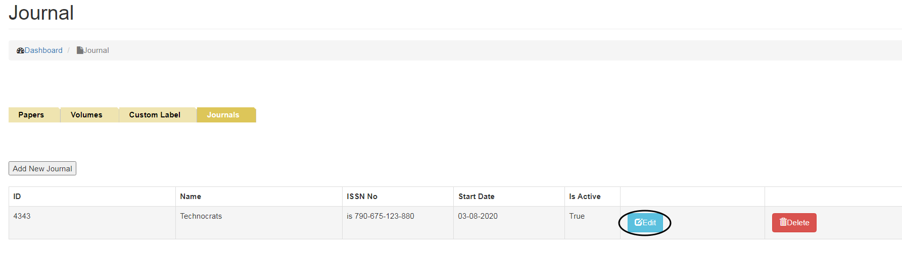 •   To Delete Journal, click on the Delete button.